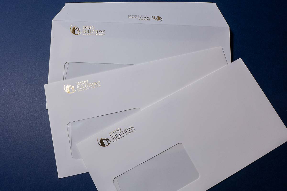 Kuverts mit Goldprägung, goldener Heißfolienprägung, Prägefoliendruck Gold kaufen: Viele Namen, eine Optik, die Ihnen positive Zuschreibungen zu Luxus, Wertbeständigkeit und Topqualität bringt!